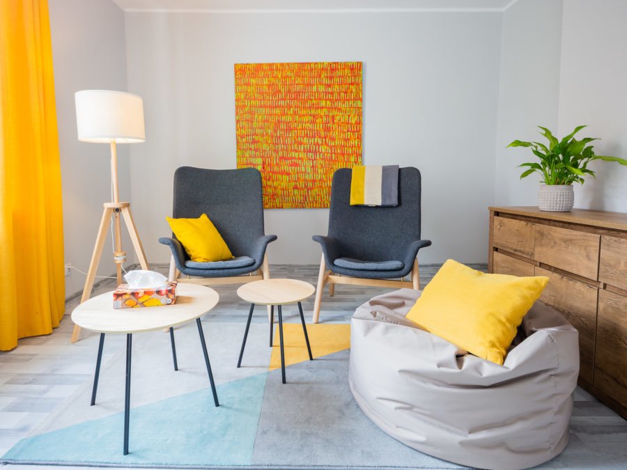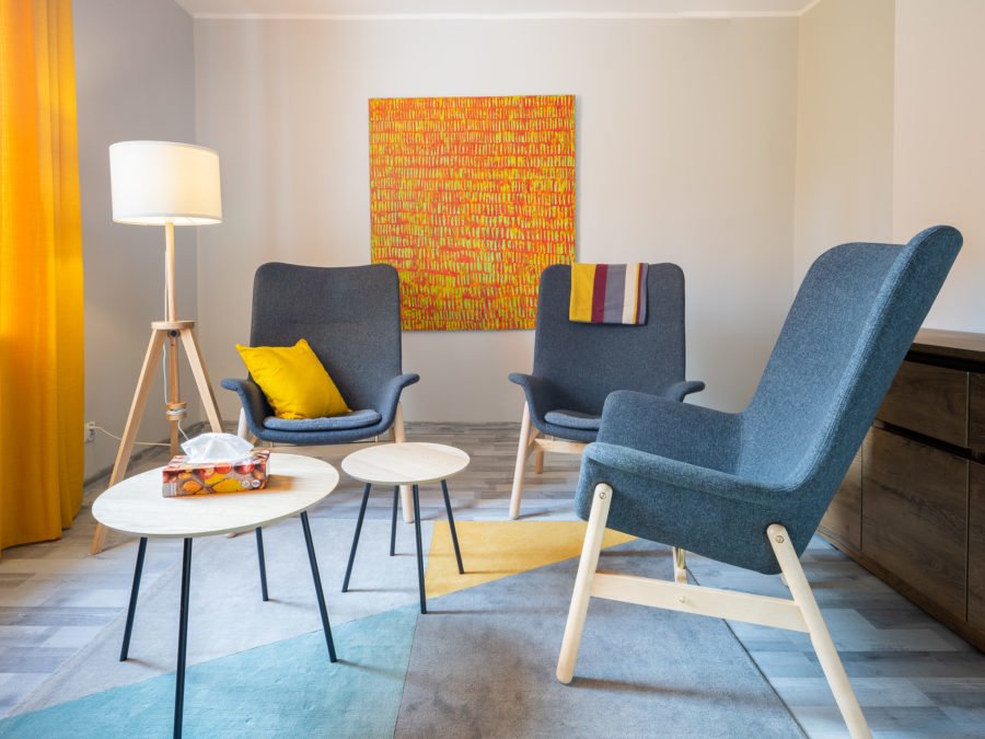 Gabinet o powierzchni ok. 14 m kw. Wyposażony w 3 fotele, biurko, 2 stoliki oraz komodę. Do dyspozycji specjalistów oraz klientów są: czajnik, koce oraz poduszki.   Cena: 450,- zł netto miesięcznie za dzień w tygodniu.
